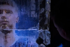 记者写道:“科尔·帕尔默在斯坦福桥球场外的球星卡冰雕。”