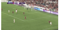 第11分钟,韦世豪传中,周定洋头球中柱。