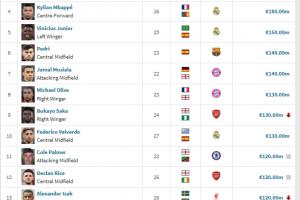 皇马:贝林厄姆1.8亿、姆巴佩1.8亿、维尼修斯1.5亿、巴尔韦德1.3亿