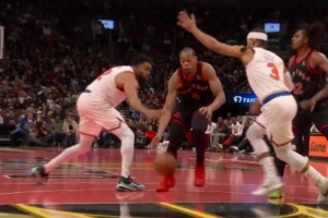 GIF-巴恩斯突破脱手裁判给争球 尼克斯挑战
