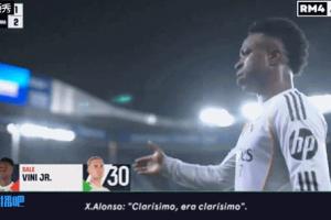 据转播方捕捉到的镜头,维尼修斯下场时,阿隆索直言“(点球)很明显,那很明显。”维尼修斯也表示:“很明显,他们没判点只因为是我。”