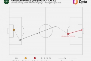 106分10秒- 浙江FC的米特里策在8月3日对阵深圳新鹏城第106分10秒的进球是2025赛季中超的最晚进球,也是自2012年有记录以来,中超的第二晚进球(不算加时赛),仅次于成都蓉城的韦世豪在2024年4月vs长春亚泰时的进球(第107分39秒)。压哨进球