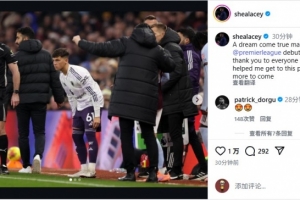 莱西写道:“梦想成真,在曼联完成了我的英超首秀。感谢所有帮助我走到这一步的人,希望未来能有更多出场机会。”