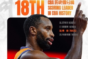 上海男篮官方晒出数据:随着弗格在第三节命中一记三分,他的CBA生涯总得分来到7842分,超越马尚·布鲁克斯升至CBA历史得分榜第18位!