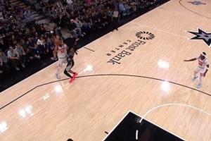 GIF-唐斯压哨造成三分犯规