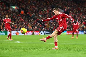 利物浦首发:1-阿利松、4-范戴克、5-科纳特、6-凯尔凯兹、12-布拉德利、8-索博斯洛伊、10-麦卡利斯特、7-维尔茨、17-琼斯、38-赫拉芬贝赫、18-加克波