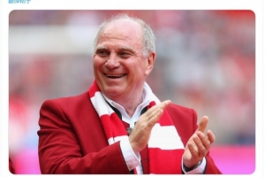 拜仁官方社媒晒出赫内斯的照片,配文:“我们的名誉主席今天迎来74岁生日,生日快乐!”