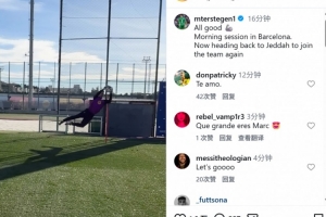 体育资讯1月9日讯 巴萨门将特尔施特根在今日通过社媒晒出自己的训练片段,透露自己即将返回吉达。