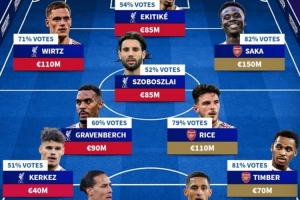 体育资讯1月9日讯 阿森纳和利物浦将在本轮英超迎来强强对决,《转会市场》也根据球迷投票列出了两队合体最佳阵。
