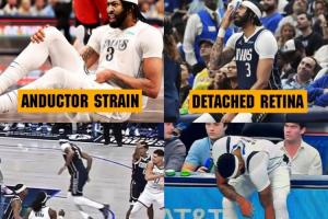 浓眉自被湖人交易至独行侠后至今仅为独行侠出战了29场比赛,在这29场比赛内,他已遭遇了6处不同的伤病,分别是(按时间顺序):内收肌拉伤、视网膜脱离、小腿挫伤、跟腱酸痛、腹股沟拉伤、左手韧带损伤。
