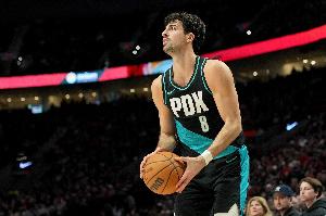 上半场比赛,阿夫迪亚进攻端不在状态,投篮手感不在,他出战19分钟,7中1,三分3中0,罚球4中4仅拿6分2篮板3助攻,还出现4失误。