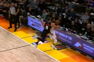 GIF-阿伦将球捅到布里奇斯身上出界,尼克斯挑战失败,太阳球权