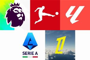 其他三个联赛,西甲巴萨19轮后4分领跑,意甲国米19轮后3分领跑,法甲朗斯17轮后1分领跑。