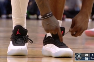 罚球时紧了紧鞋带