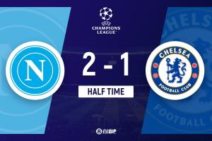 上半场伤停补时3分钟,半场结束,切尔西暂1-2那不勒斯。