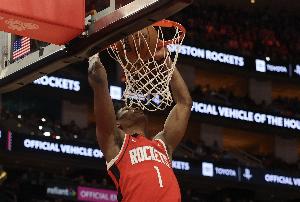 体育资讯1月29日讯 NBA常规赛,火箭主场99-111被马刺逆转。赛后阿门·汤普森接受了媒体采访。