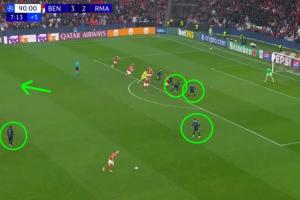 报道称,皇马最后一粒丢球暴露了球队长期以来的问题。在皇马被罚下2人后,本菲卡获得前场定位球机会,而皇马仍有三人未参与防守,这成为球队混乱状态的缩影,皇马禁区内有8名本菲卡球员,而皇马仅有5人参与防守。