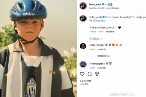 体育资讯2月3日讯 霍尔姆以先租后买的形式在冬窗加盟尤文,他在加盟后更新了社交媒体,晒出了自己儿时身穿尤文球衣的照片。