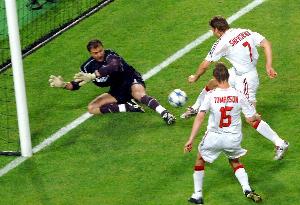 舍甫琴科:“没有,那全是胡扯。在职业球队里不会发生这种事。发生的一切都是足球的一部分,有时你找不到原因。我有两次机会,杜德克做出了超神扑救,之后我们有6分钟完全断电。他们的门将对我创造的奇迹我至今无法解释,我的射门已经做到了最好,球本可以进却没进,这就是生活的一部分。我三四个月没睡着觉,那是沉重的打击。
