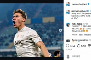 在社交媒体上,那不勒斯进球功臣霍伊伦调侃道:为那些第3分钟看球,然后在第95分钟离开的球迷感到遗憾。