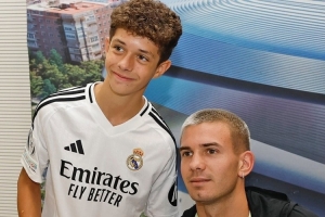 皇马客场对阵皇家奥维耶多的比赛之前,卢宁、马斯坦托诺参加球迷见面会,与小球迷们互动合影,并为他们签名,皇马官方社媒晒出照片。