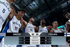 本场比赛,希腊依靠当家球星扬尼斯-阿德托昆博的强势的表现全场压制芬兰,从未落后!