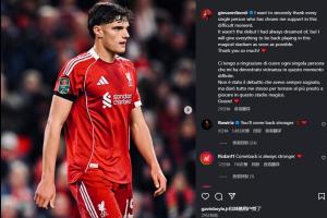 体育资讯09月25日讯 据名记罗马诺报道,利物浦18岁中卫莱奥尼十字韧带撕裂,将缺阵数月,争取赛季末复出,莱奥尼刚刚更新社媒。